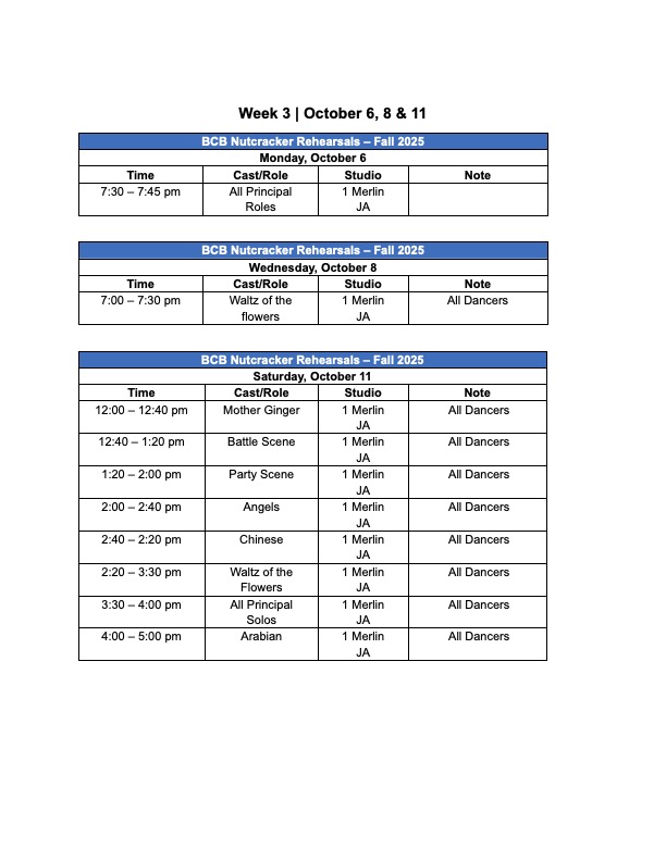 Nutcracker 2025 Rehearsals